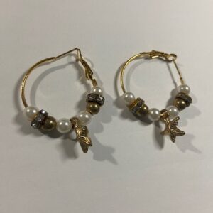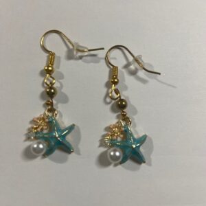 Pendientes»estrella +concha marina con blanca perla de ostra»